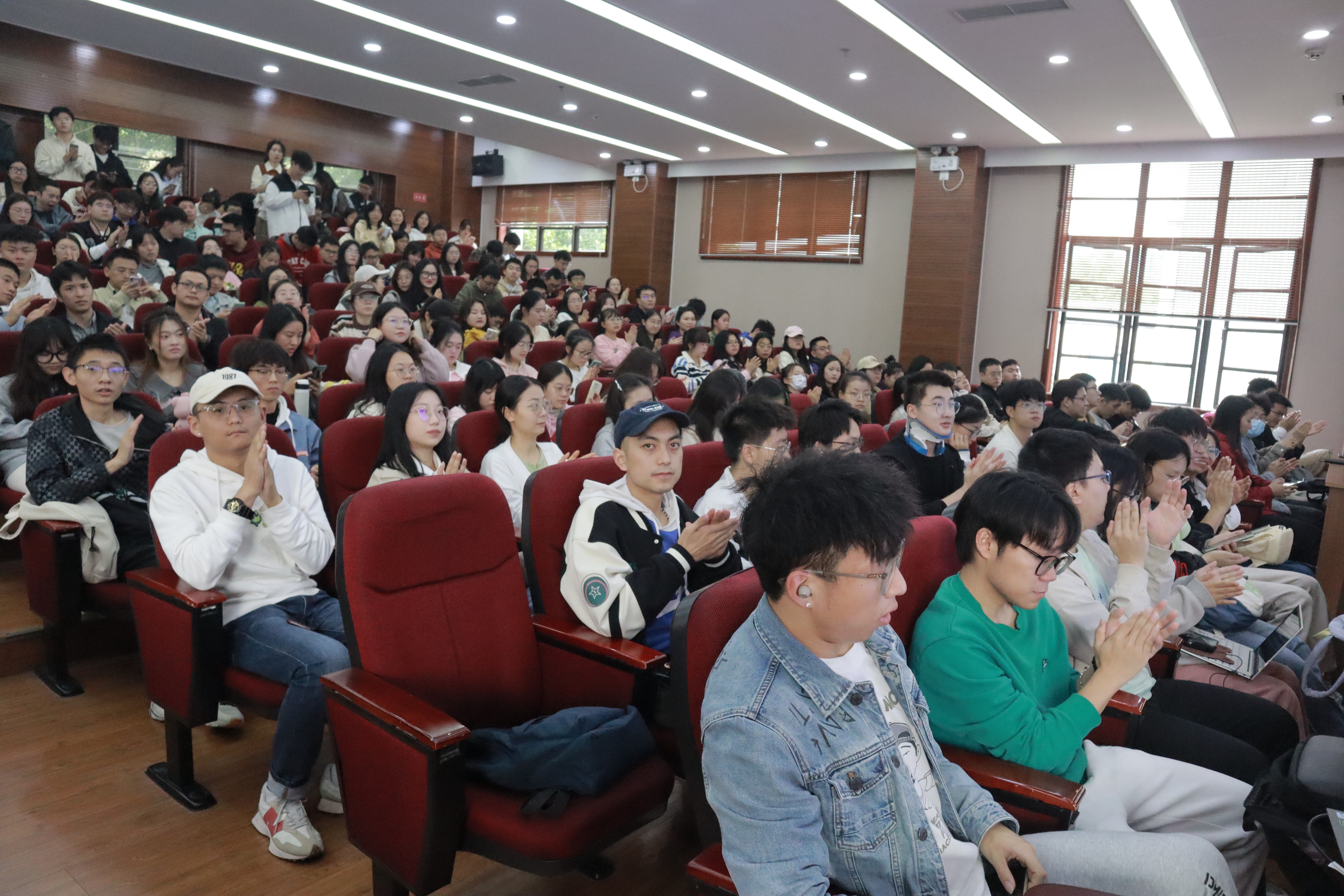 隨后湯老師為在場的研究生同學們給出了誠懇的建議:第一、積極自我暗示;第二、主動與人交流;第三、調(diào)整預期;第四、適度運動。同時湯老師以自己求學時的經(jīng)歷為例,用輕松詼諧的語言向同學們展示了這幾點建議的可行性,例如積極的自我暗示即告訴自己改變能改變的,接受不能改變的;主動與人交流,特別指與導師真誠交流,如實提出自己的訴求,與導師積極磨合;調(diào)整預期即是指過去取得的成就就留在過去,而現(xiàn)在又是一個全新的起點,不與他人比較成功與否;最后適度運動,其可以使我們從不斷的思考中短暫地解放出來,從而給大腦一個休息的時間。最后,在一片笑語中,講座圓滿結(jié)束,老師和同學們依次有序退場。