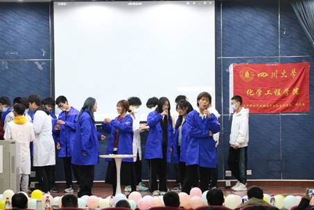 比賽也正式拉開序幕,各班級的表演形式豐富多樣,內(nèi)容精彩紛呈,為大家?guī)砹瞬灰粯拥幕す适?。比賽開始,401班一首合唱《仰望星空》帶動(dòng)了現(xiàn)場氣氛,同學(xué)們的歌聲響徹會場,也點(diǎn)燃了大家的熱情。緊接著是305班的同學(xué)帶來情景劇《化工之光,洪沅之路》,讓我們見到了不一樣的化工先輩。接著上演的有《我相信》、《明天會更好》,一首首歌曲展望了化工輝煌的未來,也深深鼓舞著新時(shí)代的化工人。
