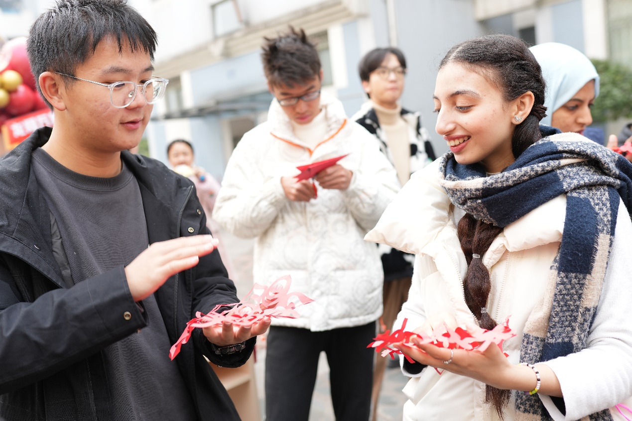 元旦佳節(jié),辭舊迎新。為了共同慶祝美好佳節(jié),弘揚(yáng)中華優(yōu)秀傳統(tǒng)文化,豐富“一站式”學(xué)生社區(qū)文化氛圍,2023年12月29日,beat365和國際合作與交流處(港澳臺(tái)事務(wù)辦公室)在江安校區(qū)西園3舍“一站式”學(xué)生社區(qū)舉辦了“四海同春,喜迎元旦”體驗(yàn)傳統(tǒng)體育、剪紙和寫祝福聯(lián)合活動(dòng),來自多個(gè)學(xué)院的留學(xué)生、港澳臺(tái)學(xué)生、本碩博學(xué)生和老師們一同參與了聯(lián)歡活動(dòng)。