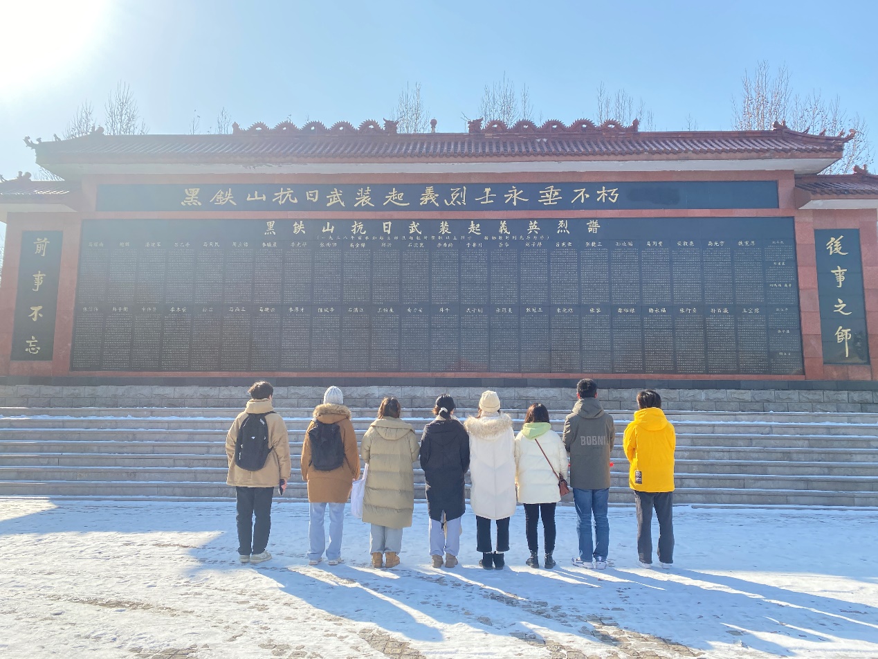 1月27日,實(shí)踐團(tuán)來(lái)到淄博黑鐵山抗日起義紀(jì)念館。在中國(guó)共產(chǎn)黨的領(lǐng)導(dǎo)下,抗日志士們高舉義旗,他們用信仰和忠誠(chéng)踐行了“天下興亡,匹夫有責(zé)的愛(ài)國(guó)情懷,視死如歸、寧死不屈的民族氣節(jié),不畏強(qiáng)暴、血戰(zhàn)到底的英雄氣概,百折不撓、堅(jiān)忍不拔的必勝信念”之偉大的抗戰(zhàn)精神。在李珍珍老師帶領(lǐng)下,各位老師和同學(xué)們一起重溫了入黨誓詞,一起瞻仰了各位英烈的英雄事跡。