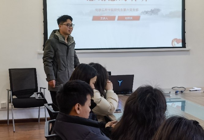隨后,研究生第六黨支部劉思琪同志進行了《學(xué)習(xí)雷鋒精神·爭當(dāng)文明先鋒》的交流分享。劉思琪同志帶領(lǐng)全體與會成員重溫雷鋒故事,體會雷鋒同志言行一致的革命精神,公而忘私的共產(chǎn)主義精神和螺絲釘精神,感受雷鋒同志助人為樂、愛崗敬業(yè)、無私奉獻的優(yōu)良品質(zhì),深刻認(rèn)識雷鋒精神的永恒價值和時代內(nèi)涵。劉思琪同志倡導(dǎo),黨員同志應(yīng)該更加積極地學(xué)習(xí)、傳承雷鋒精神,以更好地發(fā)揮黨員的先鋒模范帶頭作用。