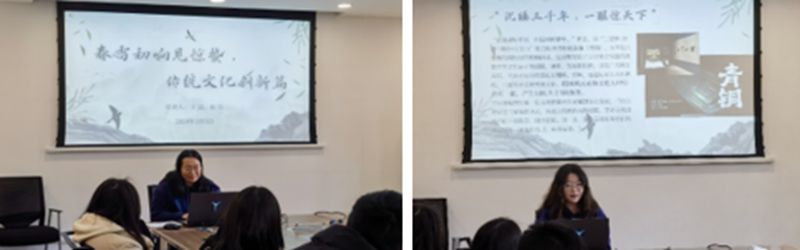 隨后,四川大學(xué)“青馬工程”弘毅班第十六期學(xué)員王喆、張雪同志為與會成員帶來了《春雷初響見驚蟄,傳統(tǒng)文化創(chuàng)新篇》的主題宣講。驚蟄是我國傳統(tǒng)二十四節(jié)氣中的第三個節(jié)氣,自古以來便有“春雷響,萬物長”的說法;驚蟄承載著的,是人們對春天、進步、光明、溫暖的希望與夢想,連接著的,是人與空氣雨水陽光。而二十四節(jié)氣作為我國優(yōu)秀傳統(tǒng)文化的代表,既是古人的智慧結(jié)晶,也可作為現(xiàn)代農(nóng)耕、人民順應(yīng)節(jié)氣生活的參考,近年來也得到了越來越多的宣傳與弘揚。傳統(tǒng)文化是國家發(fā)展的根基命脈,中國堅定的道路自信、理論自信、制度自信、文化自信,正是建立在五千多年文明傳承的基礎(chǔ)之上的,是有著深厚底蘊與堅實基礎(chǔ)的。在大力推進中國特色社會主義文化建設(shè)的現(xiàn)在,理應(yīng)讓傳統(tǒng)文化更好地?fù)?dān)負(fù)起新的文化使命,堅定文化自信、秉持開放包容、堅持守正創(chuàng)新,以人民喜聞樂見的形式把中華優(yōu)秀傳統(tǒng)文化推廣開來。