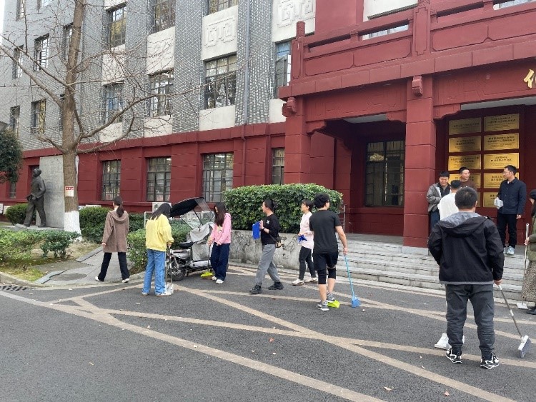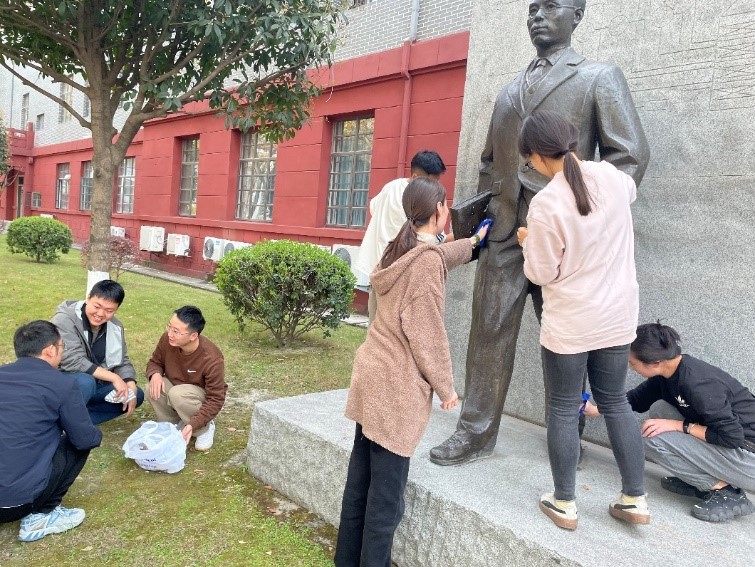 首先,燃燒動力學黨支部盧洪標同志介紹了本次活動的主旨。春分是我國傳統(tǒng)二十四節(jié)氣之一,春季的第四個節(jié)氣。俗話講:“春分麥起身,肥水要緊跟?!币粓龃河暌粓雠河赀^后忙耕田。隨著春分時節(jié)的來臨,天氣回暖,農(nóng)民伯伯們將會忙碌在田間地頭。本次主題黨日活動,研究生燃燒動力學黨支部和2022級博士研究生1班的同學們緊密結合這個傳統(tǒng)節(jié)日,積極發(fā)起春日大掃除活動。同學們一起走出教室和實驗室,拿起掃帚對beat365門前的落葉進行清掃,對張洪沅先生雕像進行了清洗。