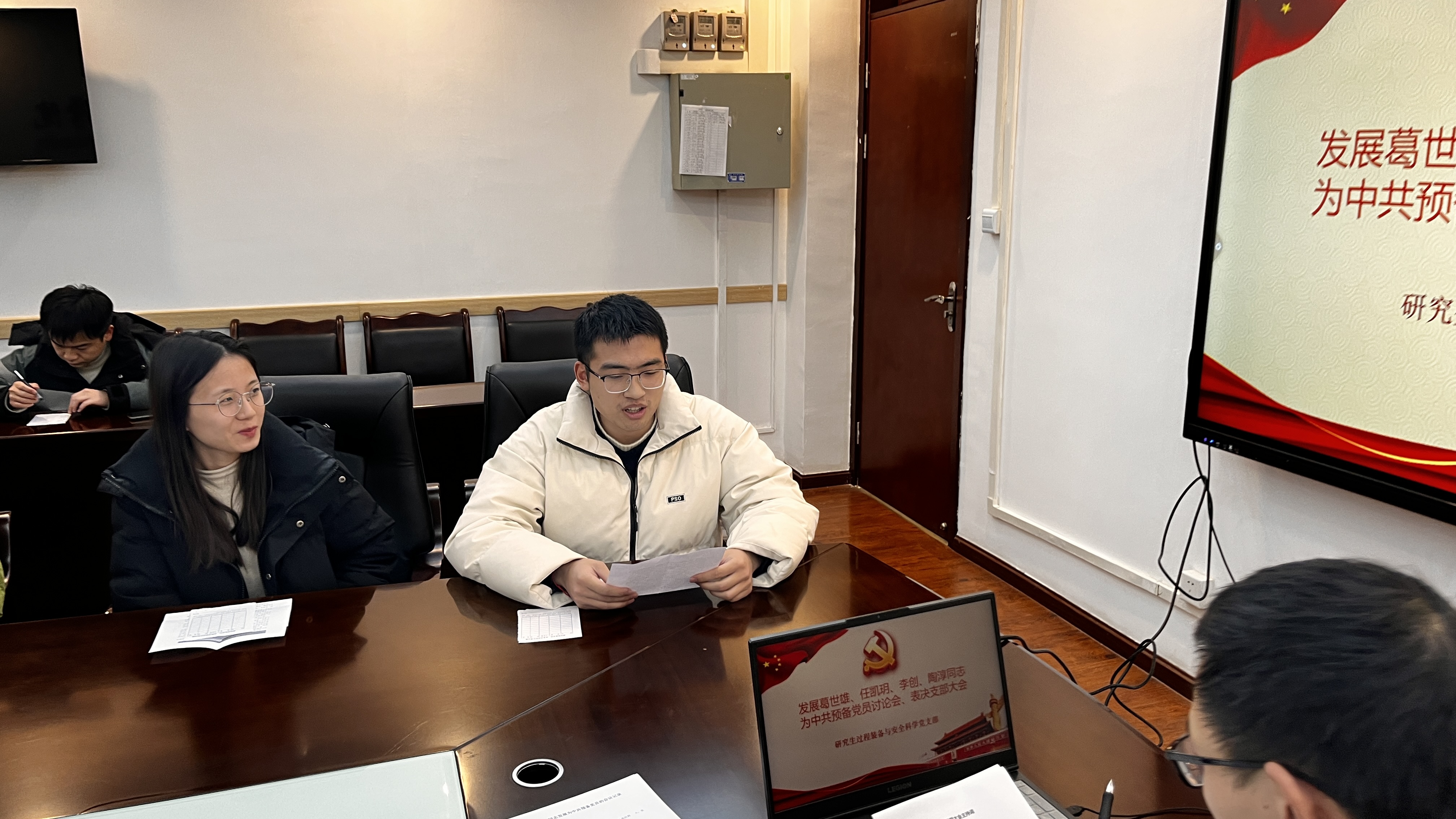 會(huì)議上首先由發(fā)展對(duì)象葛世雄、任凱玥、陶淳、李創(chuàng)同志對(duì)考察期間的學(xué)習(xí)情況進(jìn)行匯報(bào),各位發(fā)展對(duì)象近期學(xué)習(xí)努力、態(tài)度認(rèn)真,學(xué)習(xí)成果顯著,并且就各自對(duì)黨的認(rèn)識(shí)、入黨動(dòng)機(jī)、本人履歷、家庭成員和主要社會(huì)關(guān)系情況、現(xiàn)實(shí)表現(xiàn),以及需向黨組織說(shuō)明的其他問(wèn)題。會(huì)議的第二步,由入黨介紹人鄧松、孟佳欣同志介紹葛世雄、任凱玥、陶淳、李創(chuàng)同志有關(guān)情況,各位同志的的表現(xiàn)得到了入黨介紹人以及其他黨員的認(rèn)可。、會(huì)議的第三步,由支委會(huì)宣傳委員劉思鈴?fù)緢?bào)告對(duì)葛世雄、任凱玥、陶淳、李創(chuàng)同志的審查情況,第四步與會(huì)黨員發(fā)表意見(jiàn),對(duì)葛世雄、任凱玥、陶淳、李創(chuàng)同志能否入黨進(jìn)行充分討論,并進(jìn)行無(wú)記名投票表決,葛世雄等四位同志均全票通過(guò),會(huì)議同意將四位同志發(fā)展成為中共預(yù)備黨員。最后,四位同志進(jìn)行表態(tài)發(fā)言,表示將加強(qiáng)學(xué)習(xí)、努力工作。