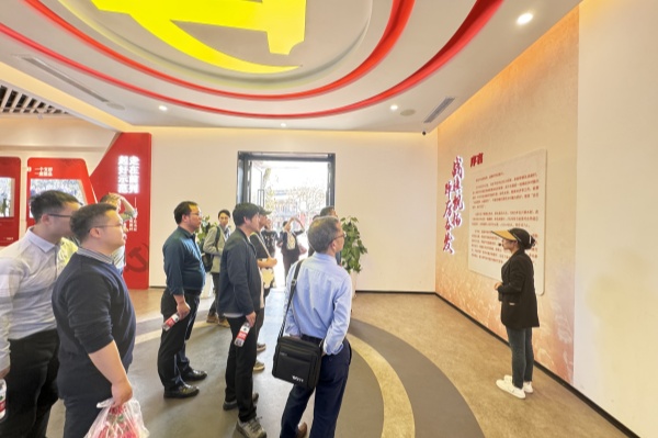 在講解員的帶領(lǐng)下,老師們參觀了戰(zhàn)旗黨建館,學(xué)習(xí)了黨建引領(lǐng)鄉(xiāng)村振興的戰(zhàn)旗路徑和戰(zhàn)旗經(jīng)驗(yàn)。多年來,戰(zhàn)旗村始終堅(jiān)持黨建領(lǐng)航守初心、勇于探索求突破、創(chuàng)新實(shí)踐謀發(fā)展,在歷屆村黨組織的帶領(lǐng)下,實(shí)現(xiàn)了集體經(jīng)濟(jì)增值、農(nóng)業(yè)增產(chǎn)和村民增收,成為了鄉(xiāng)村振興樣本。隨后,老師們探訪了戰(zhàn)旗村特色產(chǎn)業(yè),進(jìn)一步感悟了“奮勇爭(zhēng)先、敢為人先、一路領(lǐng)先”的戰(zhàn)旗精神。